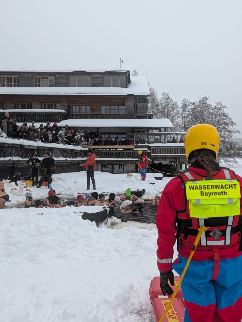 Am Sonntag, den 01.02.2026, sicherte die Kreiswasserwacht Bayreuth das traditionelle Anbaden am Fichtelsee sanitäts- und wasserrettungsdienstlich ab.