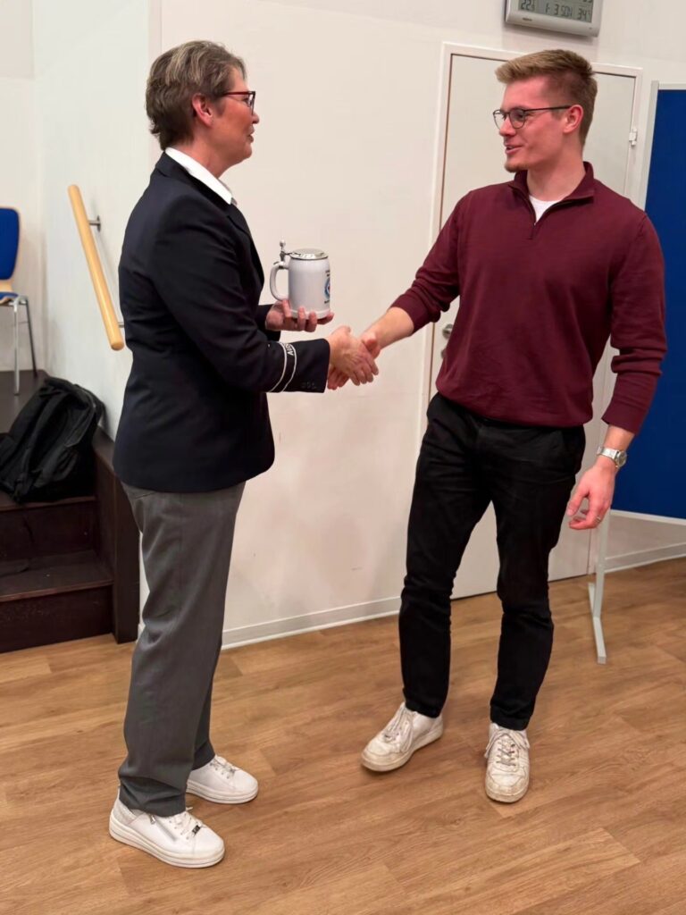 Darüber hinaus erhielt ein weiteres Mitglied den traditionellen Wasserwacht-Krug. Diese Auszeichnung wird an neu hinzugekommene aktive Mitglieder sowie an Jugendliche verliehen, die das 16. Lebensjahr erreicht haben.